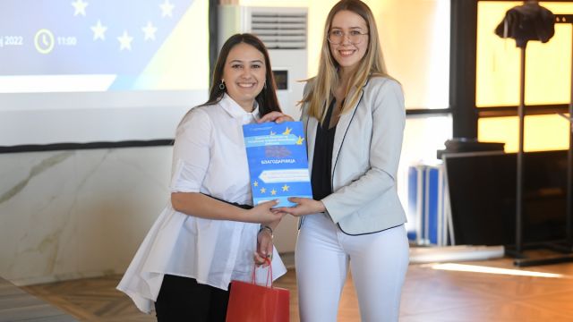Додека жири-комисијата одлучуваше за победниците на ораторскиот натпревар, се организираше и квиз на знаење за Европската Унија, каде учествуваа студенти и средношколци. Овој настан, кој започнавме да го организираме за време на пандемијата, станува традиционален, бидејќи трета година по ред има голем интерес кај младите да учествуваат и да се натпреваруваат. Натпреварот беше интересен и неизвесен до самиот крај, за по последното коло, првите три места да ги освојат: