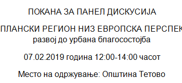 Преку рурален развој до урбана благосостојба, беше насловот на Панел дискусијата која се одржа на 07.02. 2019 година во просториите на општината Тетово. Повеќе од 30 - учесници, главно претставници на ...