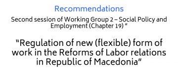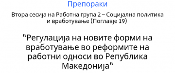 ПРЕПОРАКИ ОД ВТОРА СЕСИЈА НА РАБОТНА ГРУПА 2 – СОЦИЈАЛНА ПОЛИТИКА И ВРАБОТУВАЊЕ (ПОГЛАВЈЕ 19) – “РЕГУЛАЦИЈА НА НОВИТЕ ФОРМИ НА ВРАБОТУВАЊЕ ВО РЕФОРМИТЕ НА РАБОТНИ ОДНОСИ ВО РЕПУБЛИКА МАКЕДОНИЈА“