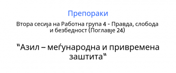 ПРЕПОРАКИ ОД ВТОРА СЕСИЈА ОД РАБОТНА ГРУПА 4 – ПРАВДА, СЛОБОДА И БЕЗБЕДНОСТ (ПОГЛАВЈЕ 24) “АЗИЛ – МЕЃУНАРОДНА И ПРИВРЕМЕНА ЗАШТИТА“
