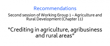 RECOMMENDATIONS FROM THE SECOND SESSION OF WORKING GROUP 1 – AGRICULTURE AND RURAL DEVELOPMENT (CHAPTER 11) – “CREDITING IN AGRICULTURE, AGRIBUSINESS AND RURAL AREAS”