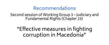 RECOMMENDATIONS FROM THE SECOND SESSION OF WORKING GROUP 3 – JUDICIARY AND FUNDAMENTAL RIGHTS (CHAPTER 23) – “EFFECTIVE MEASURES IN FIGHTING CORRUPTION IN MACEDONIA”