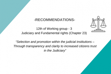 Recommendations for 12th session of Working group 3, Justice and Fundamental rights (Chapter 23), on topic: “Selection and promotion within the judicial institutions – Through transparency and clarity to increased citizens trust in the Judiciary”