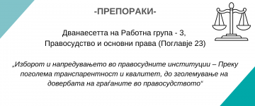 Препораки од 12та сесија на Работна Група 3, Правосудство и основни права (Поглавје 23) на тема: „Изборот и напредувањето во правосудните институции – Преку поголема транспарентност и квалитет, до зголемување на довербата на граѓаните во правосудството“