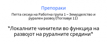 Препораки од Петта сесија на Работна група 1 – Земјоделство и рурален развој (Поглавје 11) – “Локалните чинители во функција на развојот на руралните средини“
