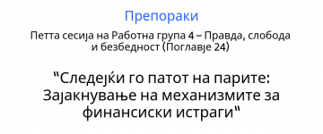 Препораки од Петта сесија на Работна група 4 – Правда, слобода и безбедност (Поглавје 24) – “Следејќи го патот на парите: Зајакнување на механизмите за финансиски истраги“