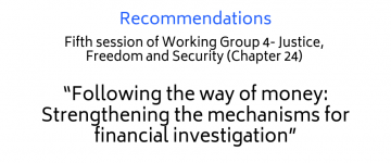 Recommendations from the Fifth session of Working Group 4 – Justice, Freedom and Security (Chapter 24) – “Following the way of money: Strengthening the mechanisms for financial investigation”