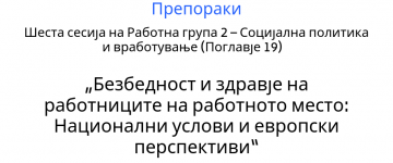 Препораки од Шеста сесија на Работна група 2 – Социјална политика и вработување (Поглавје 19) – „Безбедност и здравје на работниците на работното место: Национални услови и европски перспективи“
