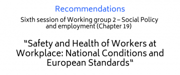 Recommendations from the Sixth session of Working group 2 – Social Policy and Employment (Chapter 19) – “Health and Safety of Workers at the Workplace: National Conditions and European Perspectives”