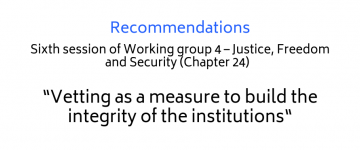 Recommendations from the Sixth session of Working group 4- Justice, freedom and security (Chapter 24) – “Vetting as a measure to build the integrity of the institutions”