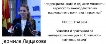 Презентација: “Законот и практиката за антидискриминација во Словачка – научени лекции” од Јармила Лајцакова