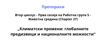 Препораки од вториот циклус – Прва сесија на Работна група 5 – Животна средина (Поглавје 27) – „Климатски промени: глобалните предизвици и националните можности“