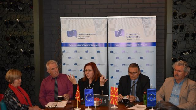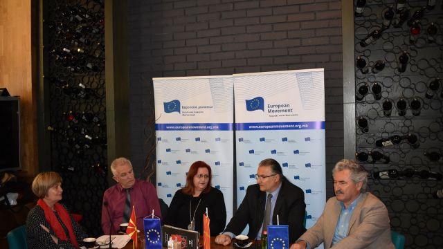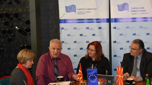 Со оваа кафе дебата на тема: Културата, уметноста и демократијата, Европското движење ја продолжи традицијата на одржување на спонатани дебати без напишани говори и без интелектуални бариери. Целта на оваа дебата беше да се разгледаат некои аспекти кои ги поврзуват културата, уметноста и демократијата. Меѓу прашањата кои уште на самиот почеток ги постави модераторот Милева Ѓуровска беа: Дали демократијата навистина има потреба од култура? На кој начин и што најмногу влијае врз оформувањето на политичката култура? Колку слободата на уметниците придонесува за развојните процеси на едно општество?