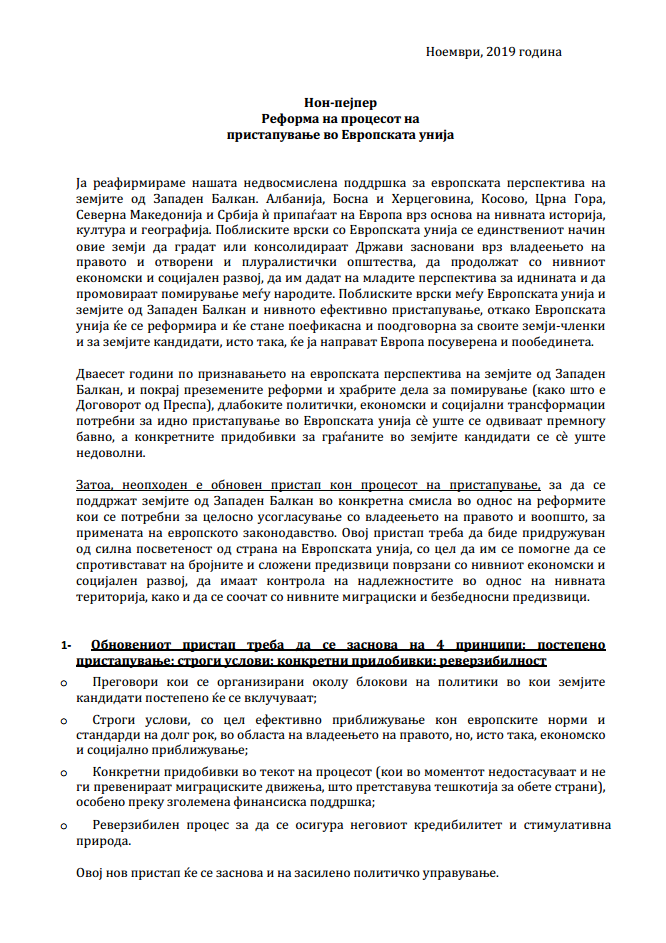 Нон-пејпер Реформа на процесот на пристапување во Европската унија