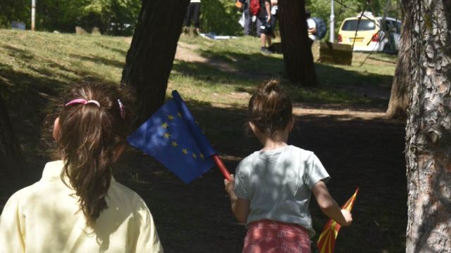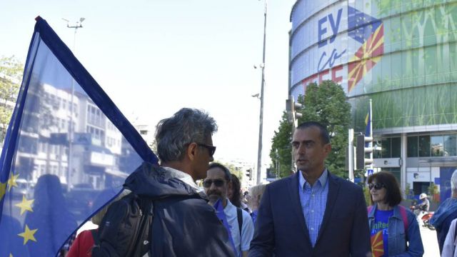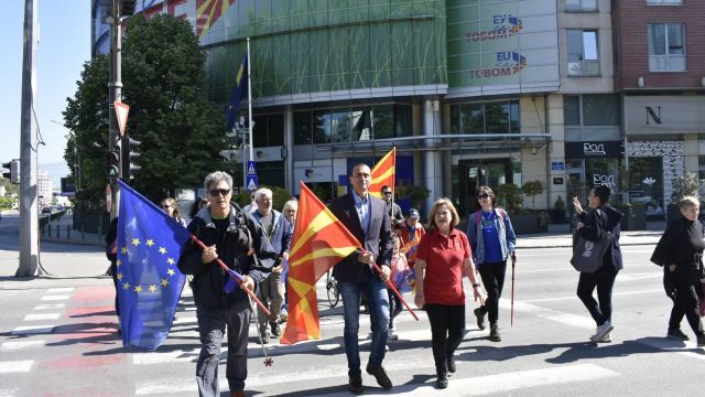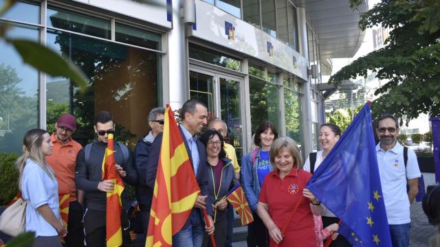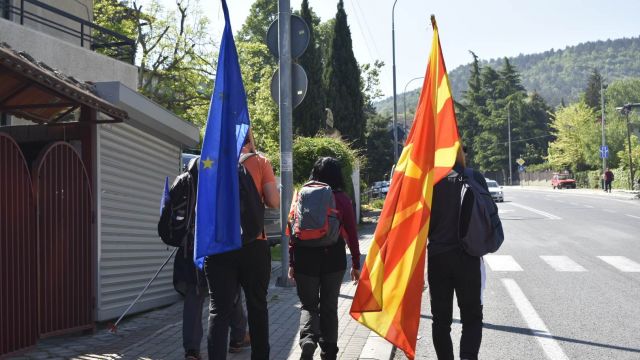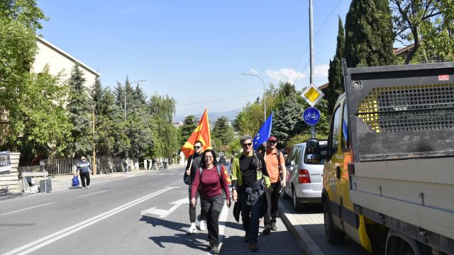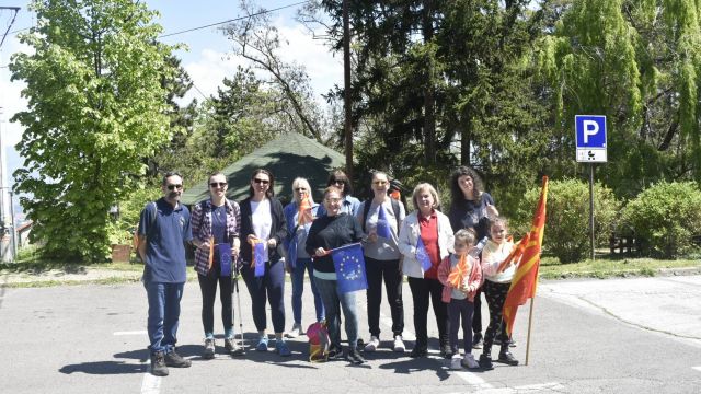 Започнавме со размена на македонското и европското знаме помеѓу претседателката Милева Ѓуровска и Штефан Худолин, шеф за соработка во Делегација на Европска Унија, а потоа учесниците на маршот продолжија кон врвот на Водно.