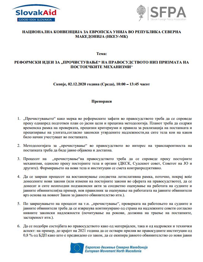 Препораки од седма сесија на Работна група 3 – Правосудство и основни права (Поглавје 23) – РЕФОРМСКИТЕ ЗАМИСЛИ ЗА „ПРОЧИСТЕНО“ ПРАВОСУДСТВО НИЗ ПРИЗМАТА НА ПОСТОЈНИТЕ МЕХАНИЗМИ
