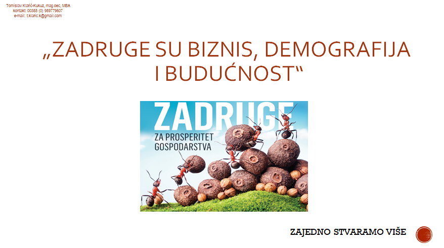 Презентација: „Кооператиците се бизнис, демографија и иднина“ од Томислав Клариќ