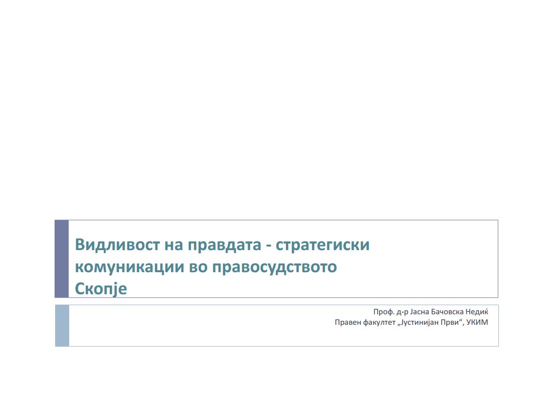 Презентација: “Видливост на правдата – стратегиски комуникации во правосудството” од Јасна Бачовска Недиќ