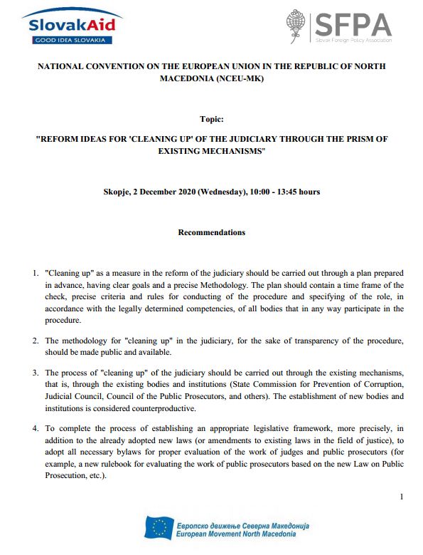 Recommendations from the Seventh session of Working group 3 – Judiciary and fundamental rights (Chapter 23) – “Reform ideas for “purified” judiciary through the prism of existing mechanisms”