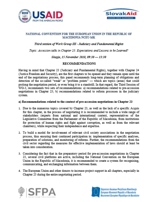 Recommendations from Third session of Working Group 3 – Judiciary and Fundamental Rights (Chapter 23) – “Accession Talks in Chapter 23: Expectations and Lessons to be Learned”