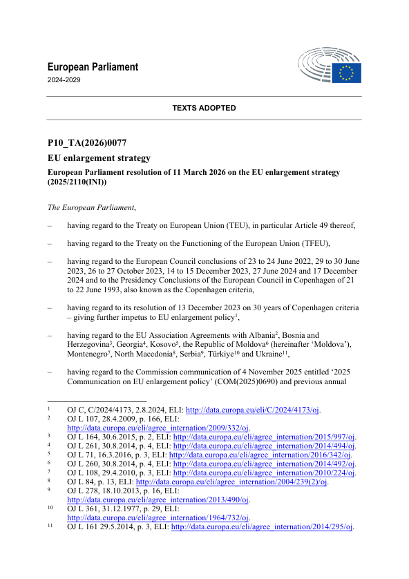 Резолуција на Европскиот парламент од 11 март 2026 година за стратегијата за проширување на ЕУ