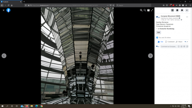 Европското движење во Република Северна Македонија, кое дејствува во рамките на Меѓународното европско движење со седиште во Брисел, по повод одбележувањето на Денот на европското обединување – 9 Мај, организиралше голем број на активности кои придонесуваат кон размена на искуства, идеи и промоција на европските вредности, меѓу кои беше и изборот на најдобра фотографија на тема: „Мојот омилен културен споменик во Европа“. Вкупниот награден фонд на овој натпревар е 250 Евра, со кои ќе бидат наградени најдобрите 3 фотографии.