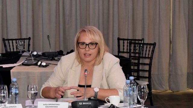 Јулија Брсакоска – Базеркоска, Професор на Правен факултет „Јустинијан први“ – Скопје, во своето излагање се осврна на потребата од адекватни места за сместување на лицата кои бараат азил во државата. Таа исто така даде и позитивна конотација на темата, додавајќи дека Унијата се повеќе станува свесна за важноста на Западниот Балкан во миграциските процеси.