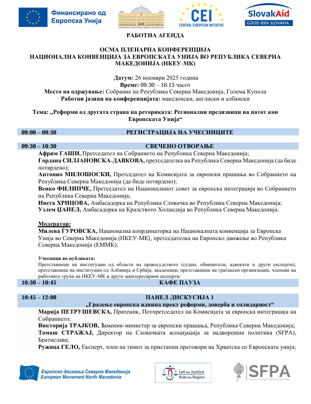 Aгенда – Четврта регионална пленарна конференција „Нека правдата владее во регионот“