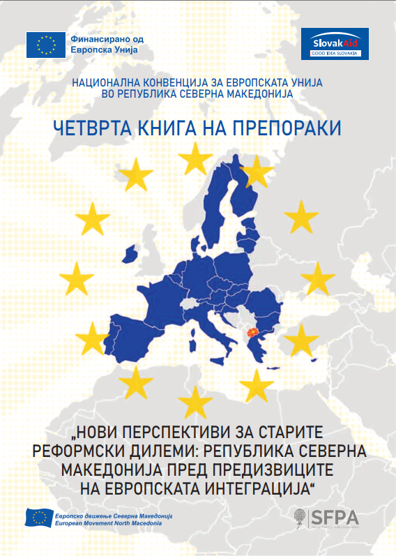 ЧЕТВРТА КНИГА НА ПРЕПОРАКИ „НОВИ ПЕРСПЕКТИВИ ЗА СТАРИТЕ РЕФОРМСКИ ДИЛЕМИ: РЕПУБЛИКА СЕВЕРНА МАКЕДОНИЈА ПРЕД ПРЕДИЗВИЦИТЕ НА ЕВРОПСКАТА ИНТЕГРАЦИЈА“